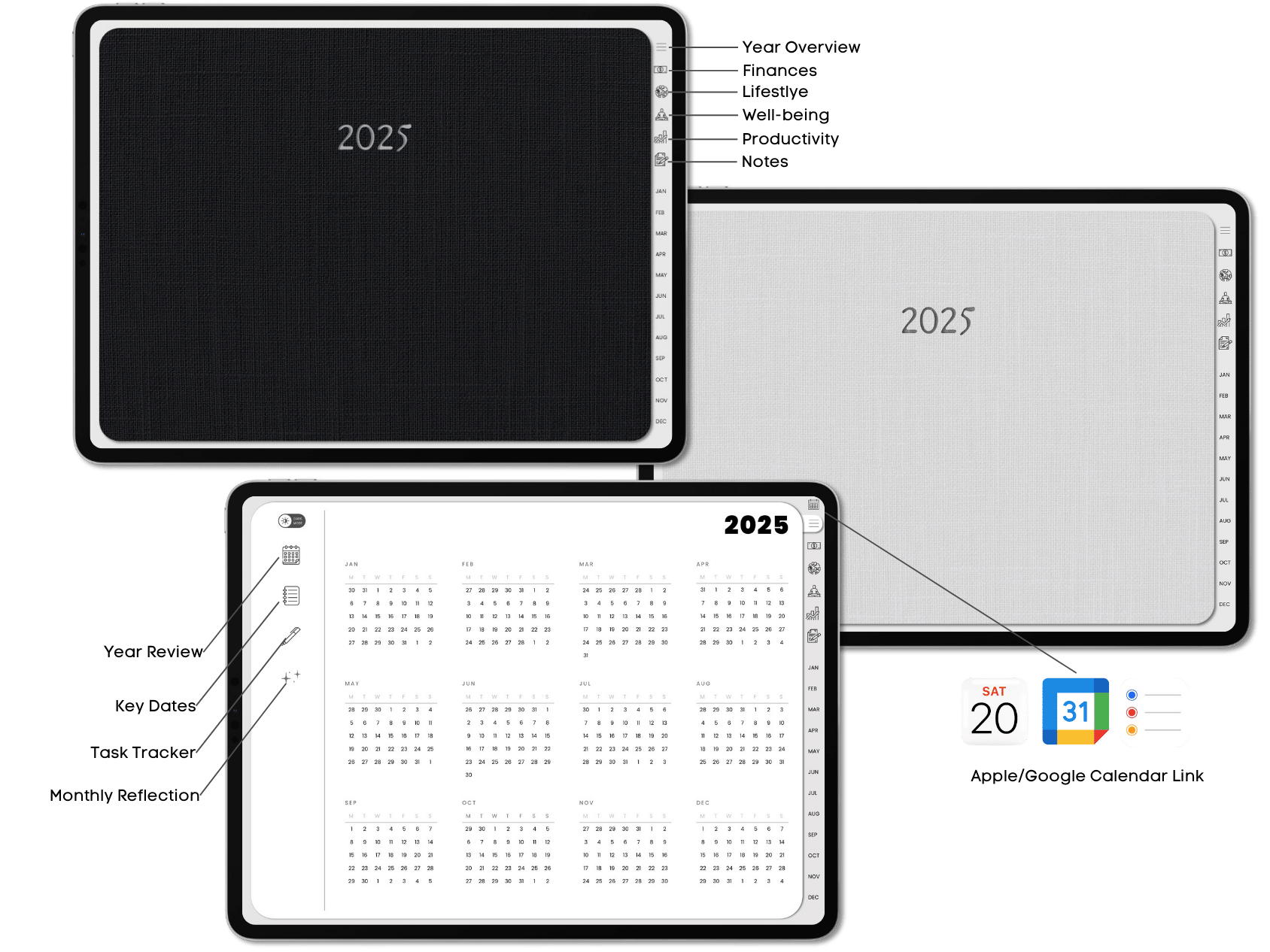Calendar Integration: This is our first planner that comes with Apple and Google Calendar Integration!