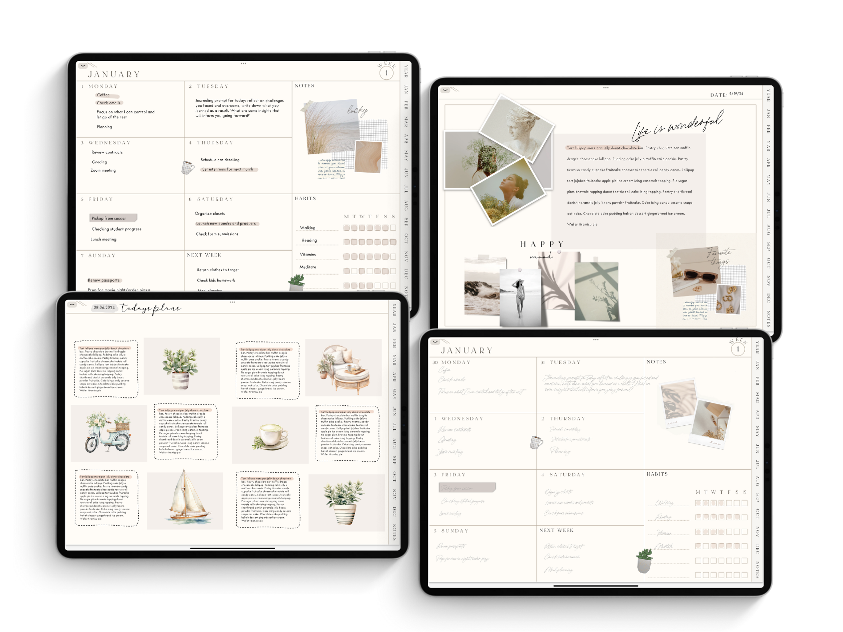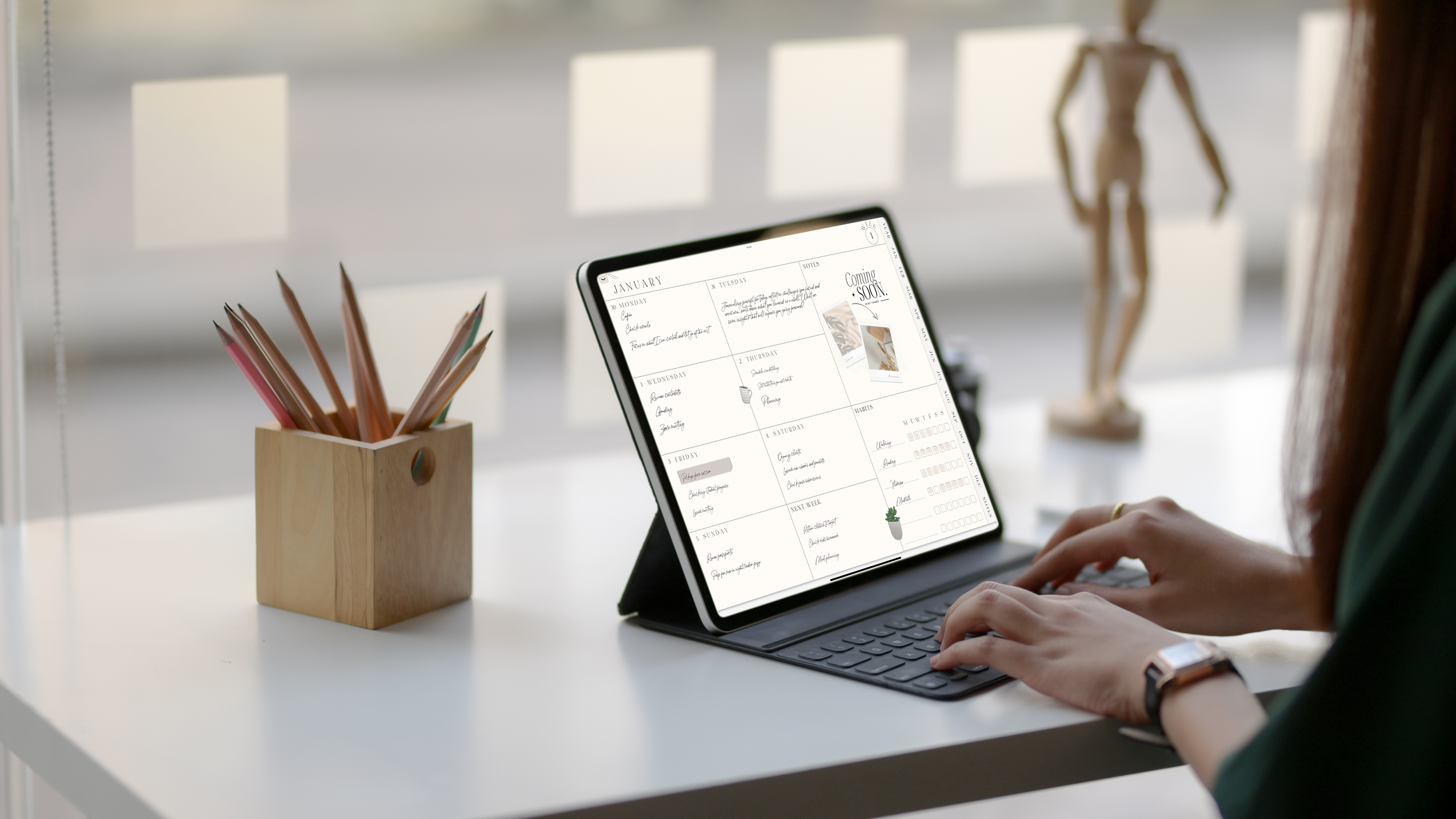 You need an iPad (preferred) with an Apple Pencil, or an Android Tablet with a dedicated Stylus (like the Samsung Galaxy Tab). These are the devices that give you the best and most authentic planner experience. You'll need a Note-taking app like GoodNotes, Noteshelf or Xodo. Lastly, you need a Joyfully Paperless Digital Product, then let the creativity begin!
